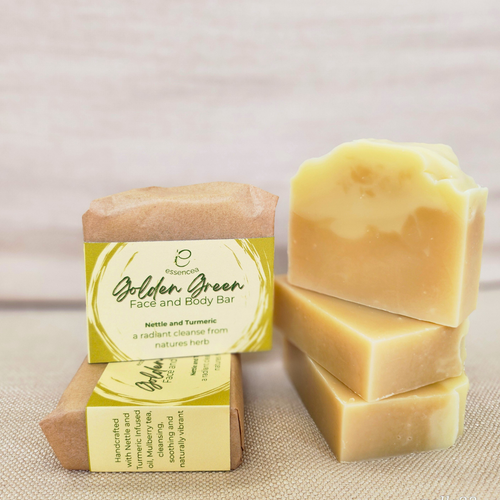Essencea Golden Green Face and Body Bar 115g | Nettle Turmeric Soap, Plant-Based Cleanser, Moisturizing Herbal Bar