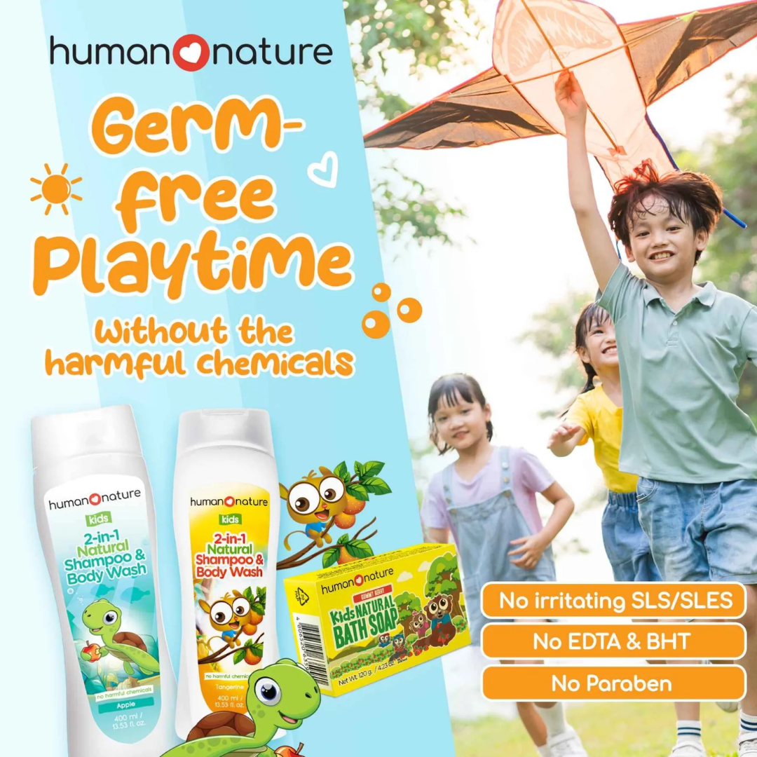 Human Nature Kids 2-in-1 Natural Shampoo and Body Wash is 98.87% natural, vegan, cruelty-free, and pH-balanced—giving children the care they deserve while keeping bath time safe and worry-free.