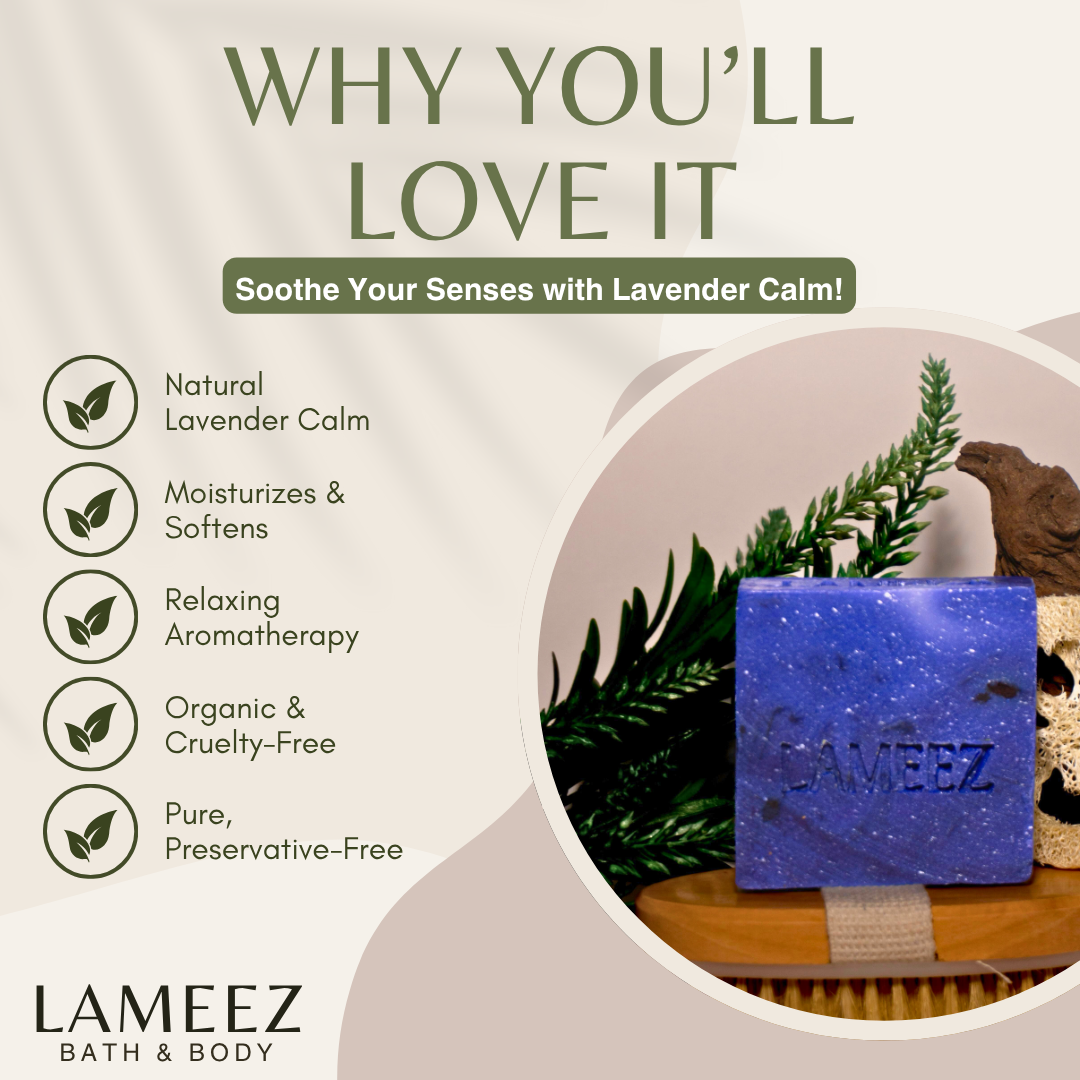Lameez Herbal Lavender Handmade Bath Soap 150g is a natural lavender soap designed to cleanse, moisturize, and soothe the skin while promoting a sense of calm. Infused with pure lavender essential oil, this moisturizing handmade bath soap turns your daily bath into a spa-like ritual of relaxation and skin nourishment. Blended with skin-loving oils and shea butter, it leaves skin soft, smooth, and refreshed.
